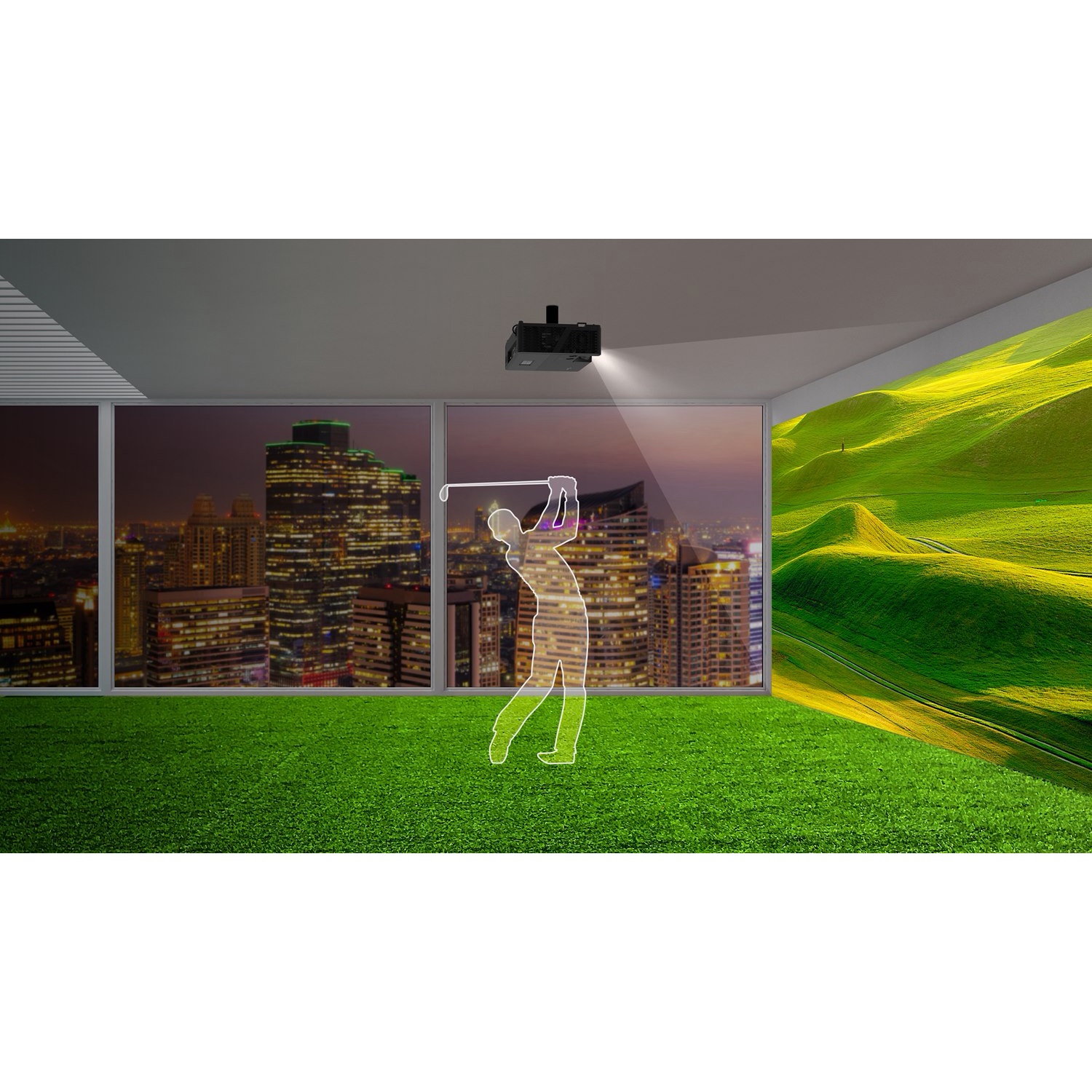 Short throw linsa gerir kleift að varpa stórri mynd úr mjög stuttri fjarlægð, sem er fullkomið fyrir kennslurými, sýningarrými og hermi. Auk þess býður tækið upp á lens shift og sveigjanlega uppsetningu sem einfaldar alla uppsetningu.