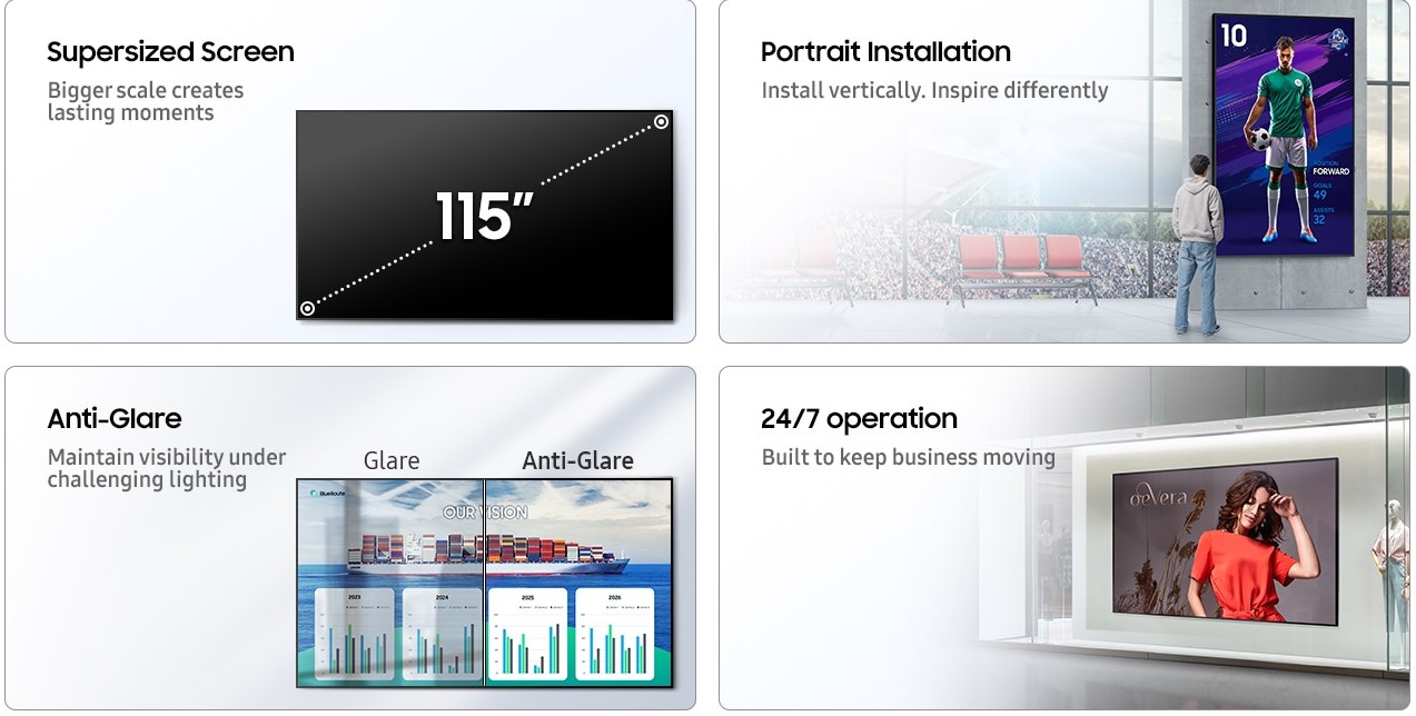 Samsung 115" LH115QHF glampafrír upplýsingaskjár UHD/4K 1000nits