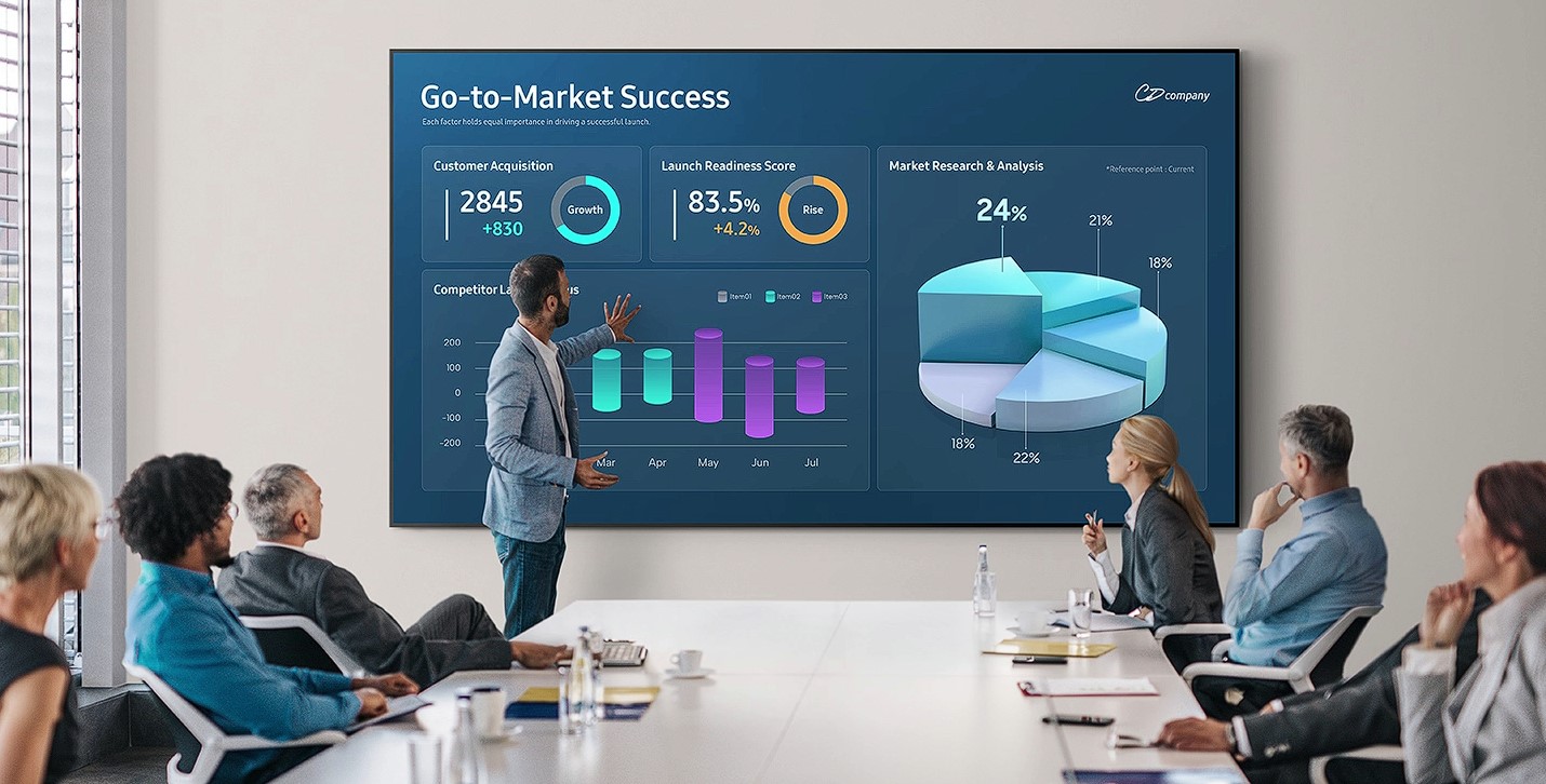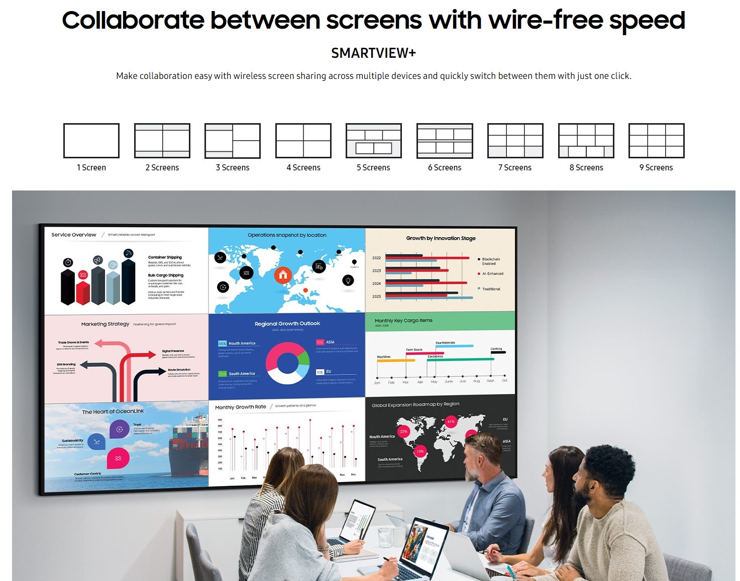 Samsung QH115F-X er stórkostlegur 115 tommu skjár sem býður upp á óviðjafnanleg myndgæði og áreiðanleika fyrir stafrænar auglýsingar og kynningar.