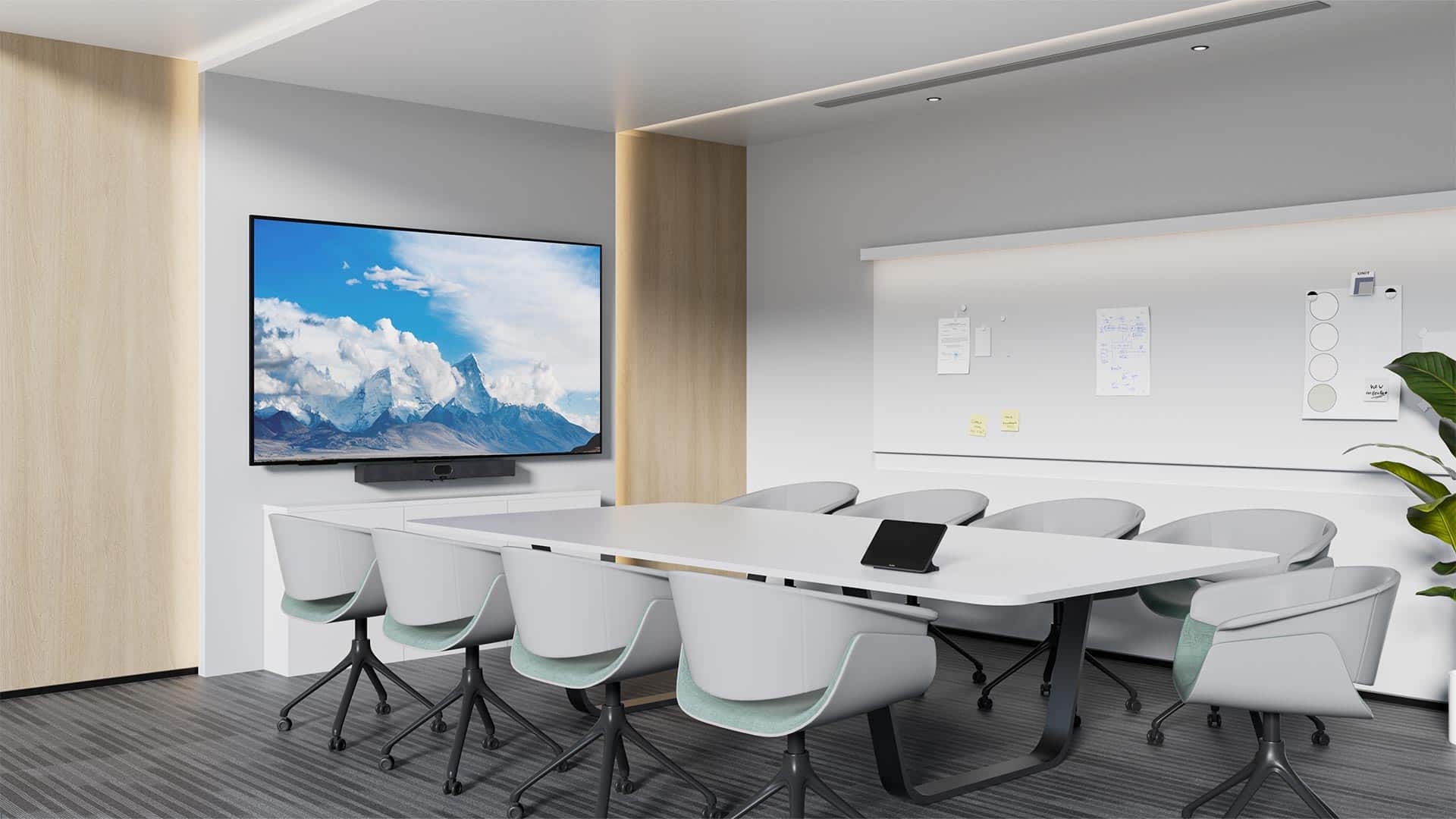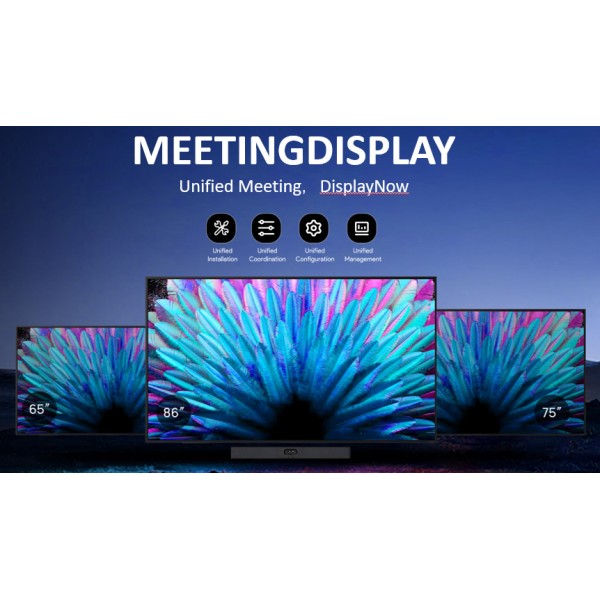 Yealink MeetingDisplay er háþróaður upplýsingaskjár sem hentar frábærlega inn í t.d. fundarherbergi. Um er að ræða bjartan IPS skjá sem styður 4K UHD upplausn með glampavörn sem tryggir að vel sést á skjáinn frá öllum sjónarhornum þrátt fyrir dagsbirtu eða sólarljós í rýminu. Skjárinn Mögulegt er að tengjast skjánum og deila efni þráðlaust með bæði Miracast og AirPlay. Góð samþætting er við Yerallink fjarfundabúnað og einfalt er að hafa umsjón og stýra þá öllum búnaði gegnum YMCS (Yealink management cloud service)