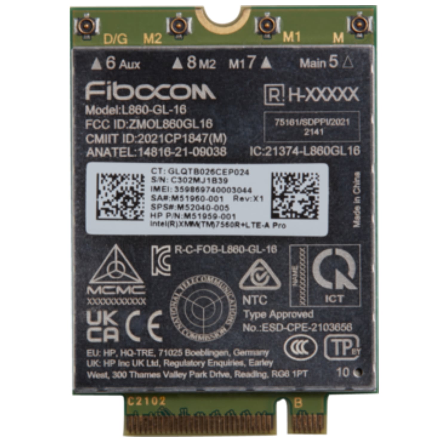 HP XMM 7560 R+ LTE-AP (5R8X8AA) er innbyggð 4G LTE Advanced Pro WWAN eining sem veitir stöðuga farsímatengingu fyrir samhæfðar HP fartölvur – fullkomin lausn fyrir vinnu á ferðinni.